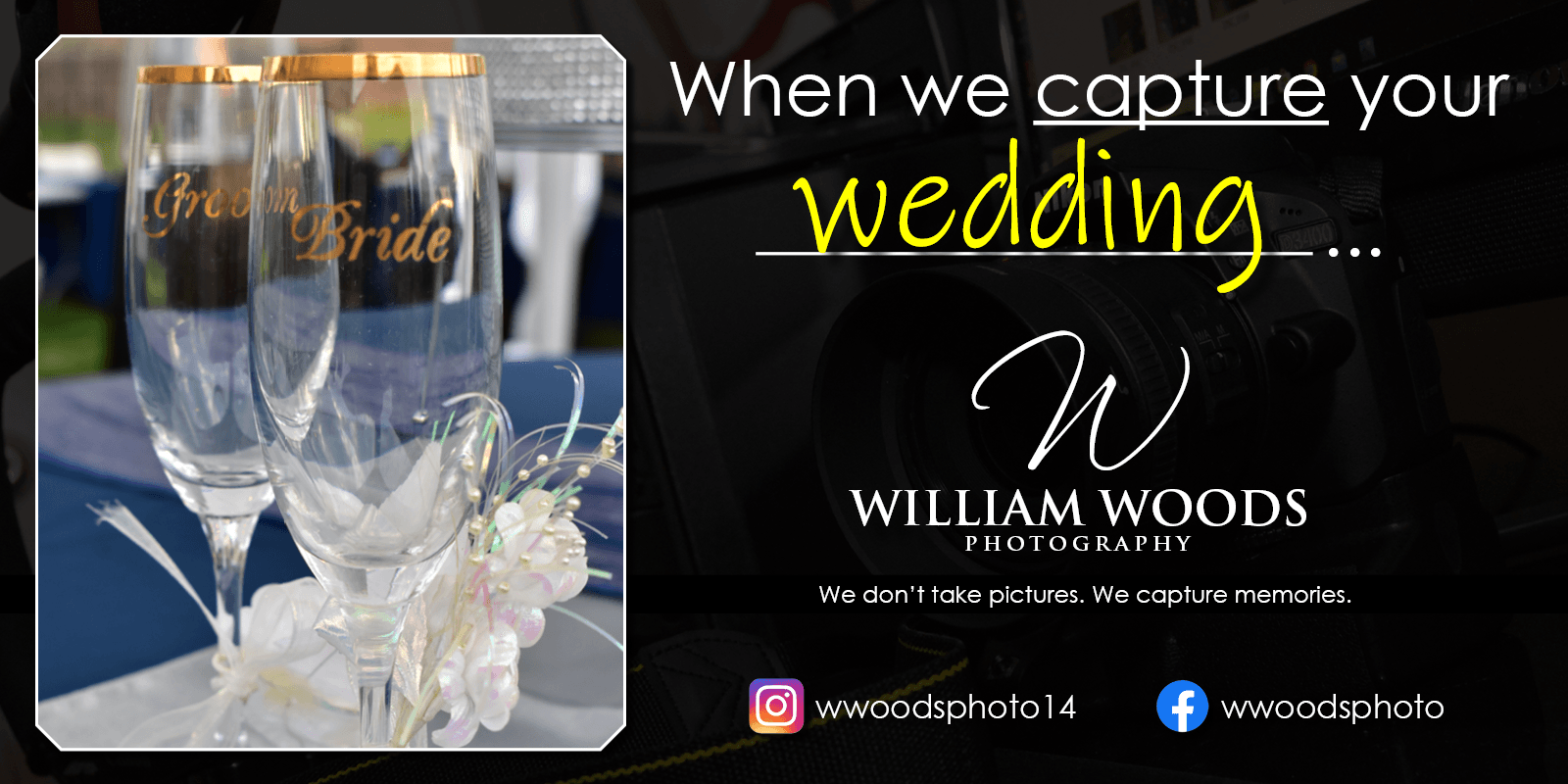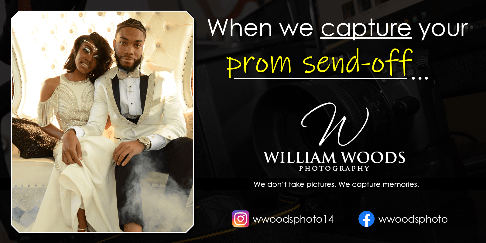Capturing your memories while helping to add to them is one of the MANY distinguishing factors that separates William Woods Photography from the rest. We pride ourselves on giving the BEST quality for any project or event. Our philosophy is that our clients are not simply paying for photos and video... They are paying for an experience. Every project, event, and subject is treated with the utmost respect, regardless of budget or constraints. Our prices are reasonable too!